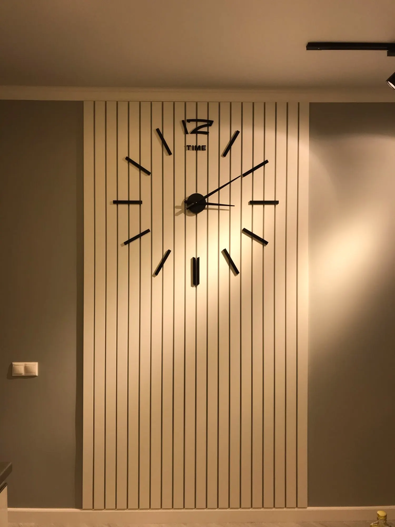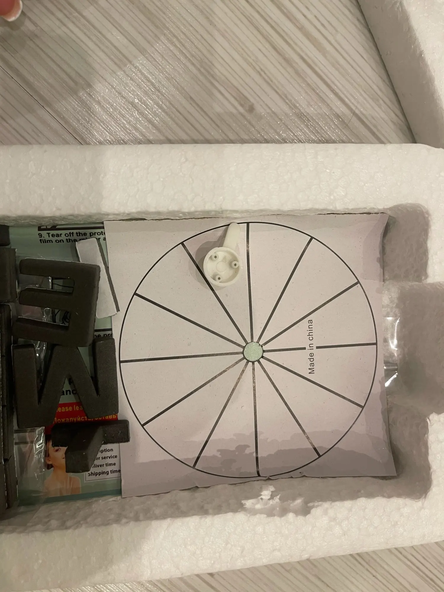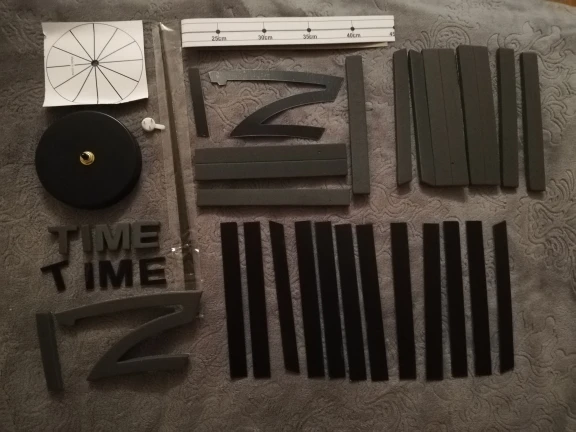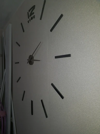 Впечатления смешанные, вроде смотрится симпатично, но качество не очень. Цвет стрелок и циферблата разных оттенков. Циферблат (палочки) клеится на чёрный материал (типо поролона) с боку его будет видно. В общем не знаю будем вешать на стену или нет.