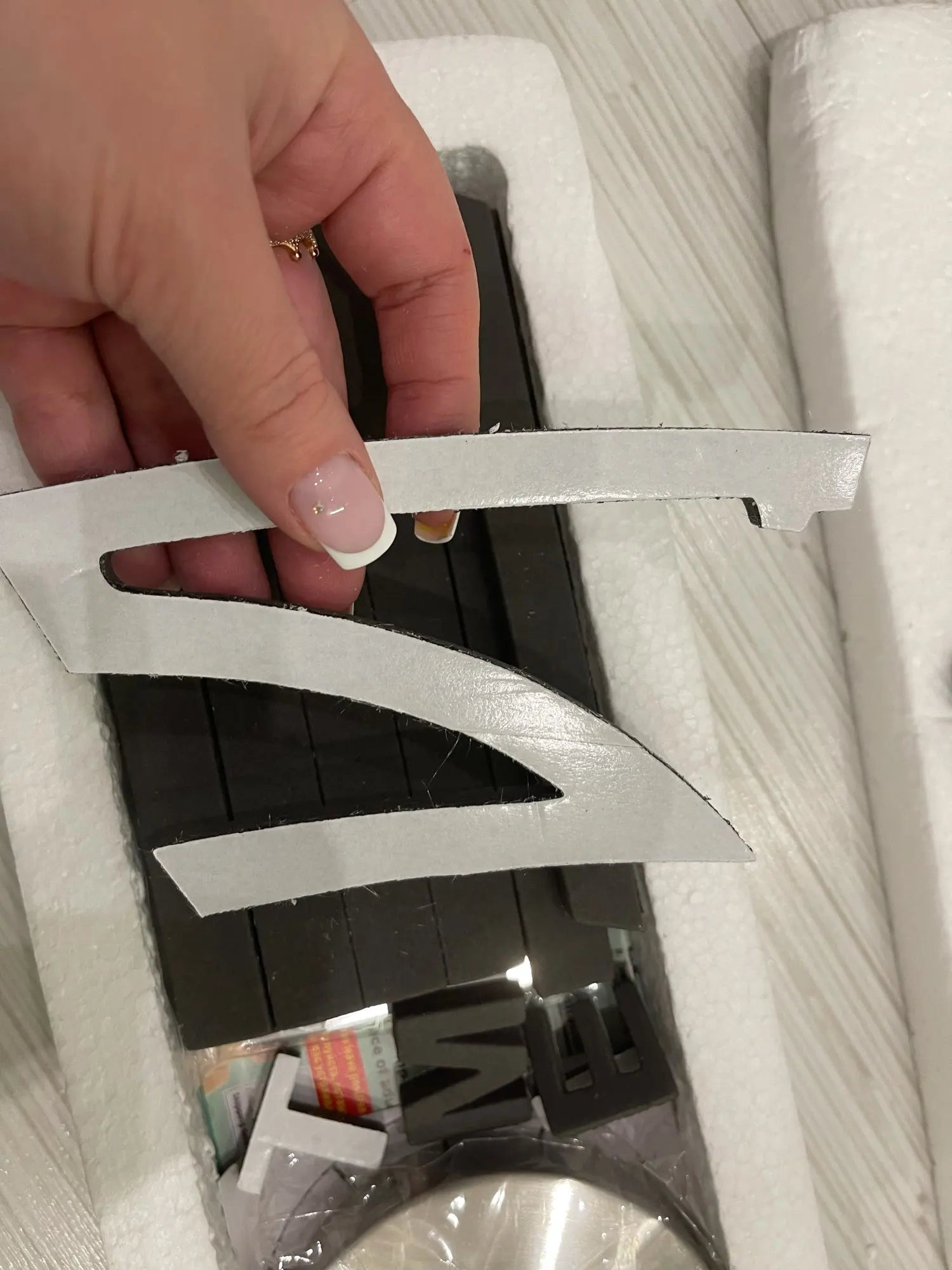 Пришли мягкие накладки, на них необходимо наклеить чёрные наклейки. Почти целый конструктор Лего