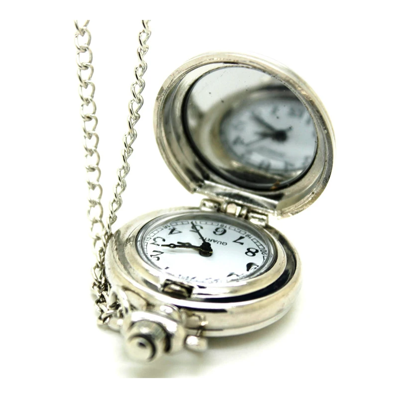 (8 шт.) новое ожерелье из страны чудес, кролик, кошка, кварцевые карманные часы с зеркалом для концерта, Рождественская вечеринка