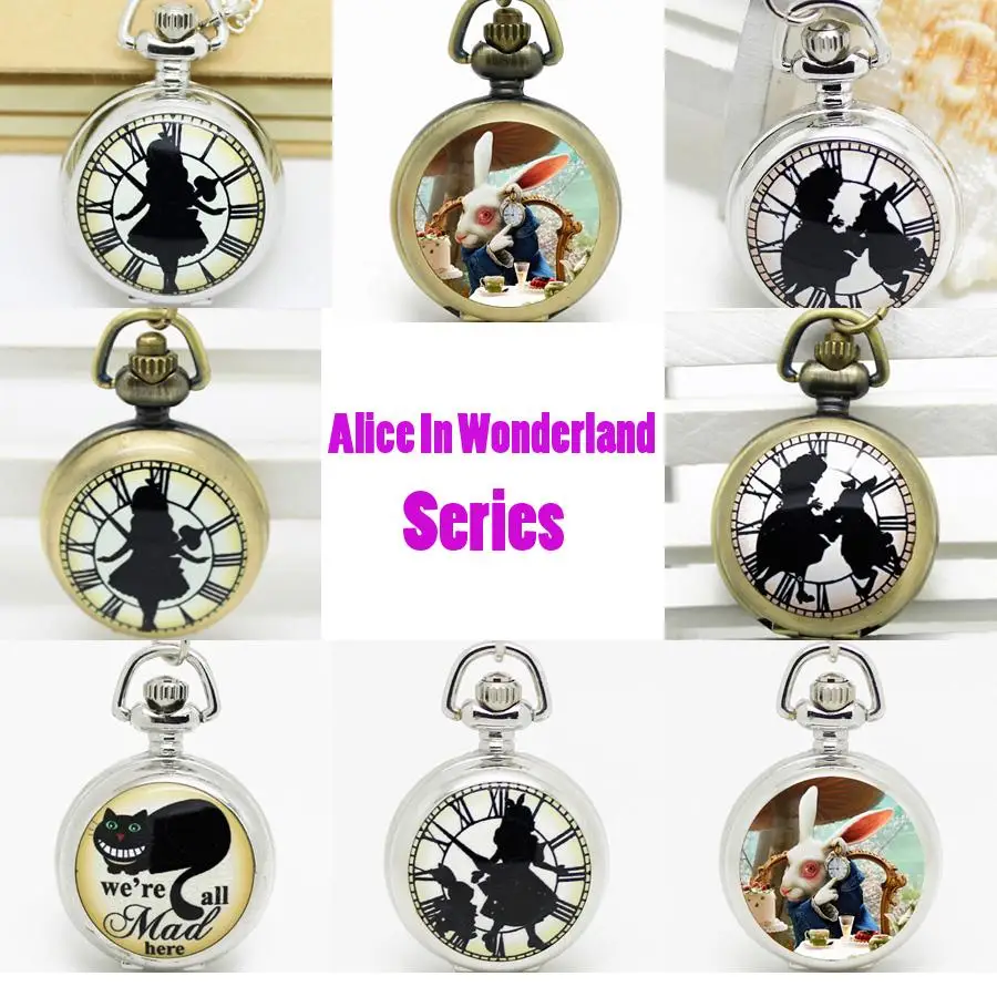 Зеркальные кварцевые карманные часы Алиса в стране чудес, 10 шт.лот