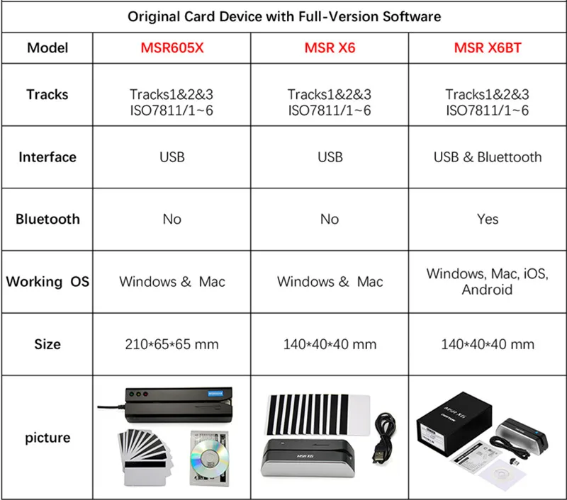 По сравнению с популярной моделью MSR605, MSR605X не требует внешнего адаптера питания.