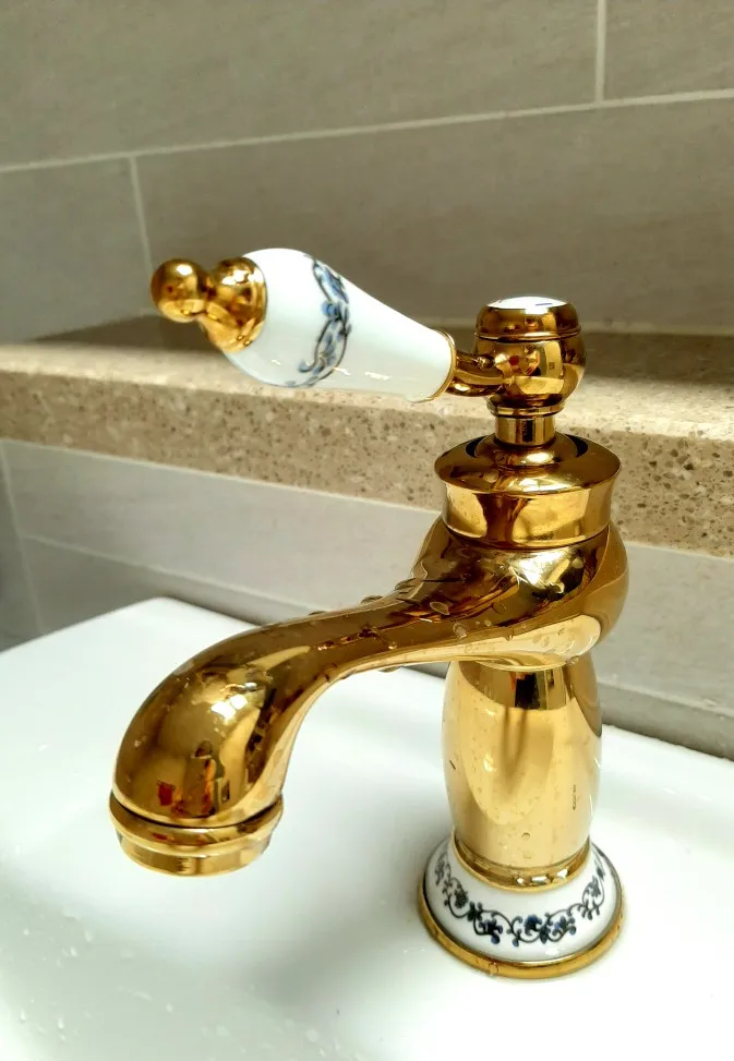 Роскошный смеситель для раковины, современный смеситель для ванной комнаты, золотая отделка, латунный Смеситель для горячей и холодной раковины с одной ручкой, с керамические краны