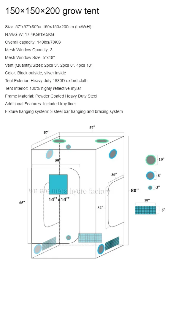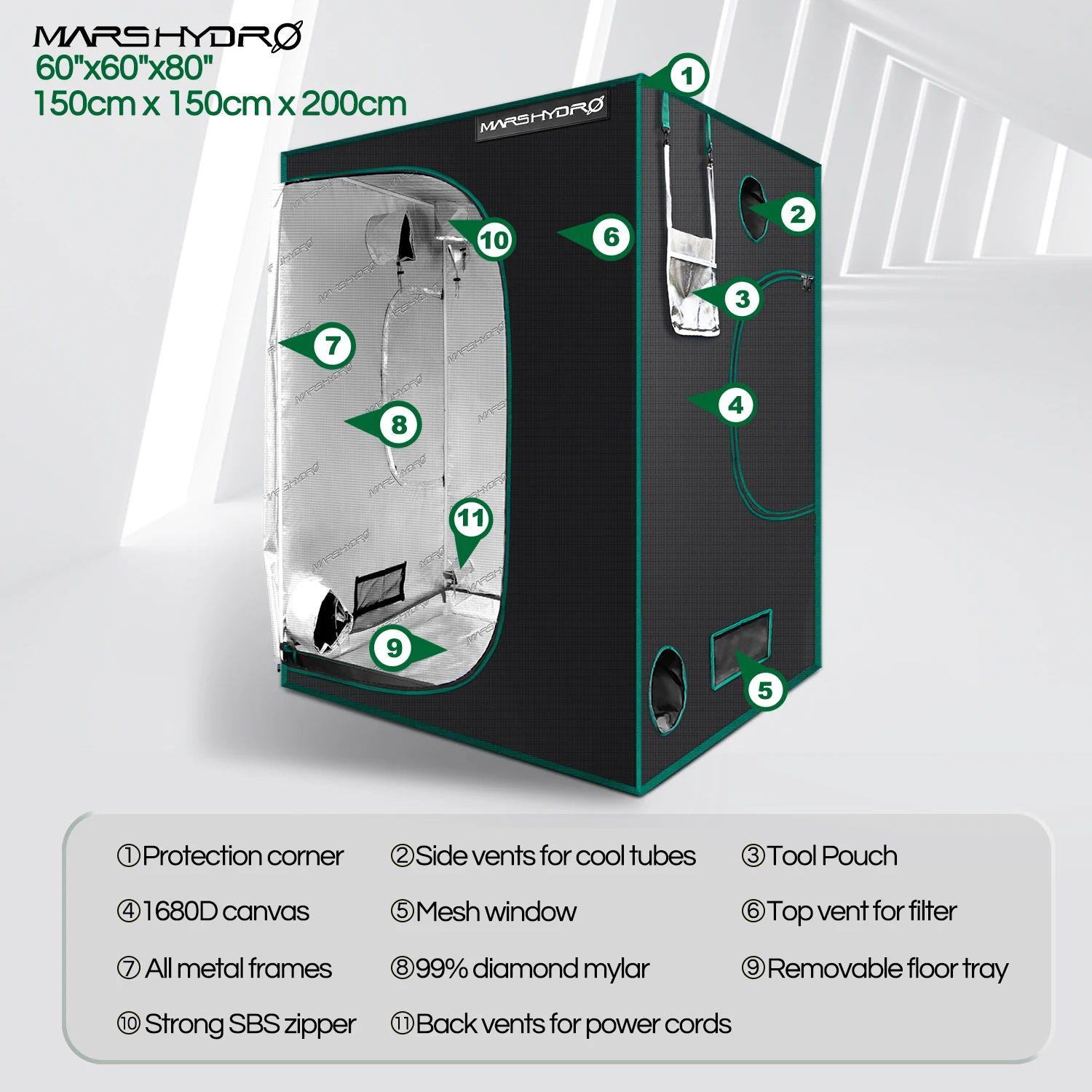 Набор для выращивания в палатке Mars Hydro 1680D, 150x150x200 см, для гидропоники, комнатной теплицы