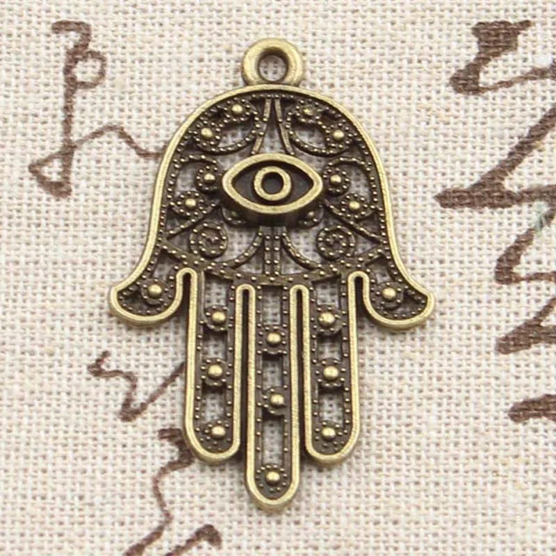 Подвески глаз смерти, Хамса, защитный амулет в виде ладони, рука Фатимы, 36x25 мм, 4 шт., для изготовления подвесок под старину, винтажные бронзовые тибетские