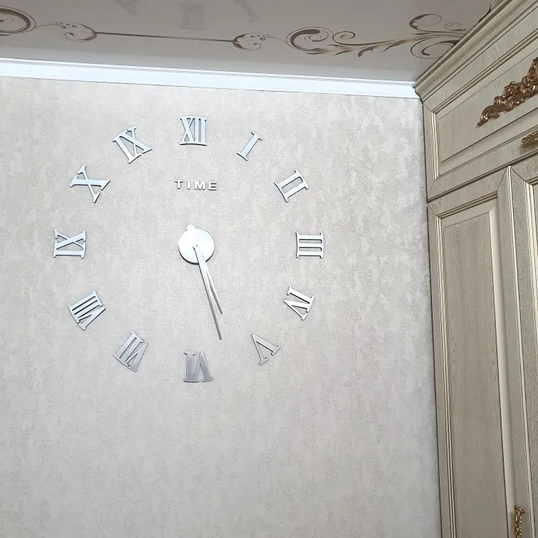 Диаметр выбираем сами, очень удобно. Подходят часы как для небольшой комнаты, так и для большой гостинной. Зеркальный цвет красивый