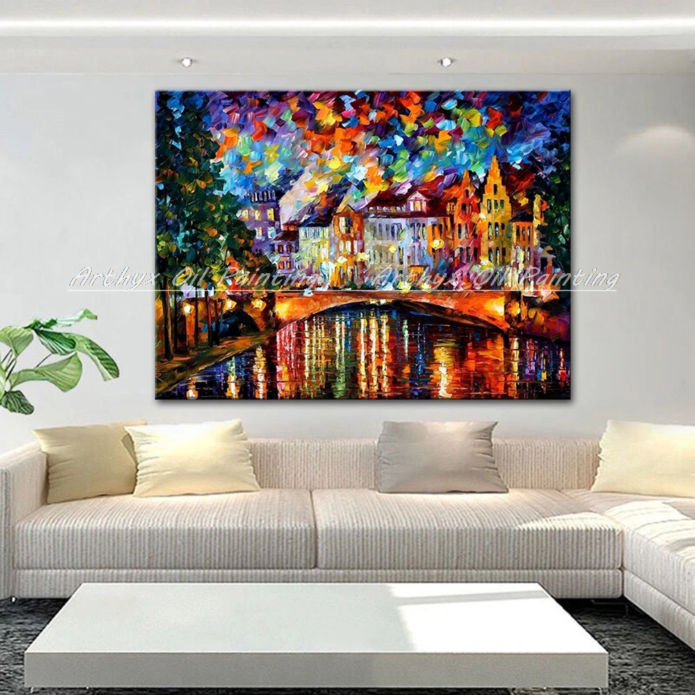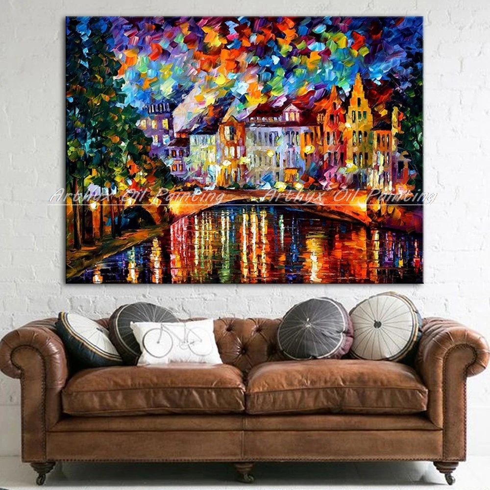 Палитра ножей ручной росписи красочный городской пейзаж картина маслом на холсте Современная Абстрактная гостиная домашний декор Настенная картина
