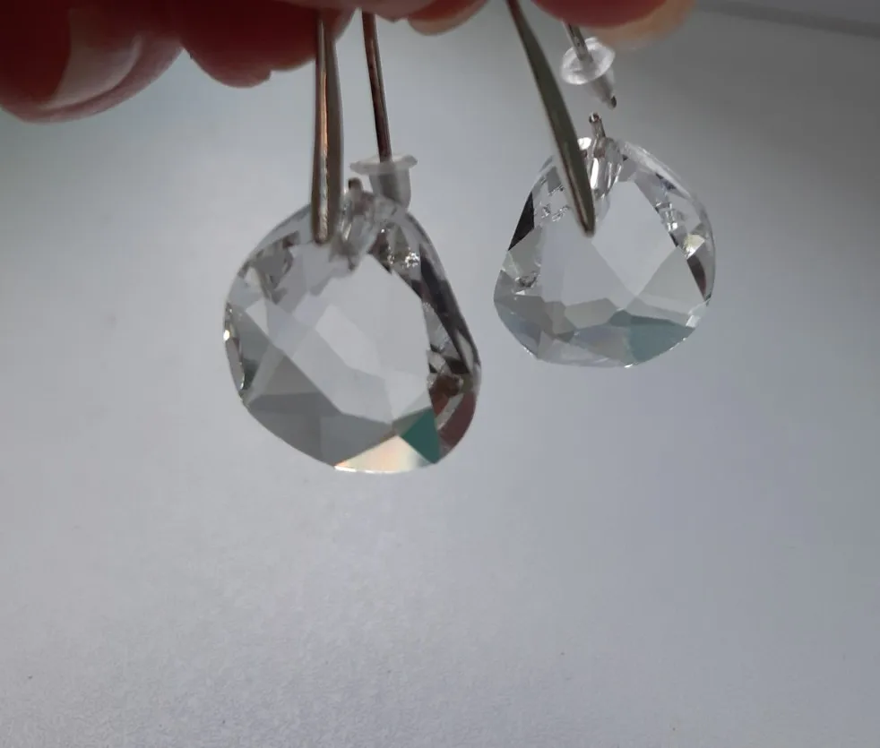 Швензы ужасные! Все в зазубринах, кривые. Камень может выскочить с крючка, так как крючок не зажат как следует. Надо менять. Сам камень не блестит, прозрачный. Вобщем, не советую...