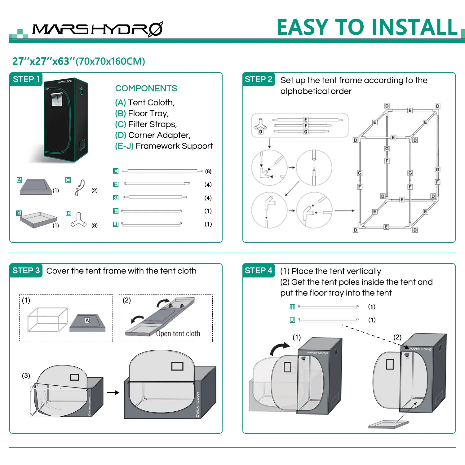 Marshydro 70x70x160 см grow box гроубокс тент для выращивания 1680D Крытый 2'3'' x2'3'' x5'3'' большой культивированный Гидропоника парник для рассады теплица для огорода