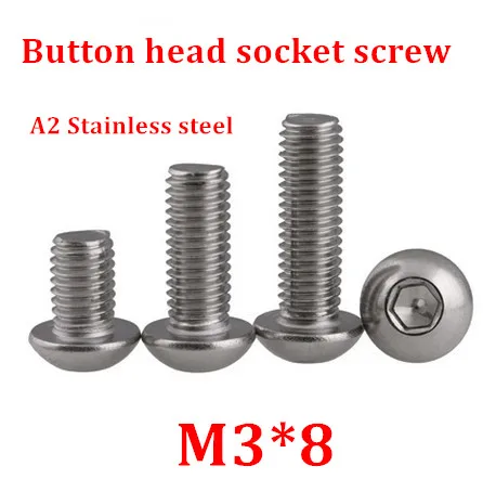100 шт.лот M3 * 8 болт, винтболт из нержавеющей стали SUS304 с резьбойголовкой на кнопках ISO7380, M3X8 мм