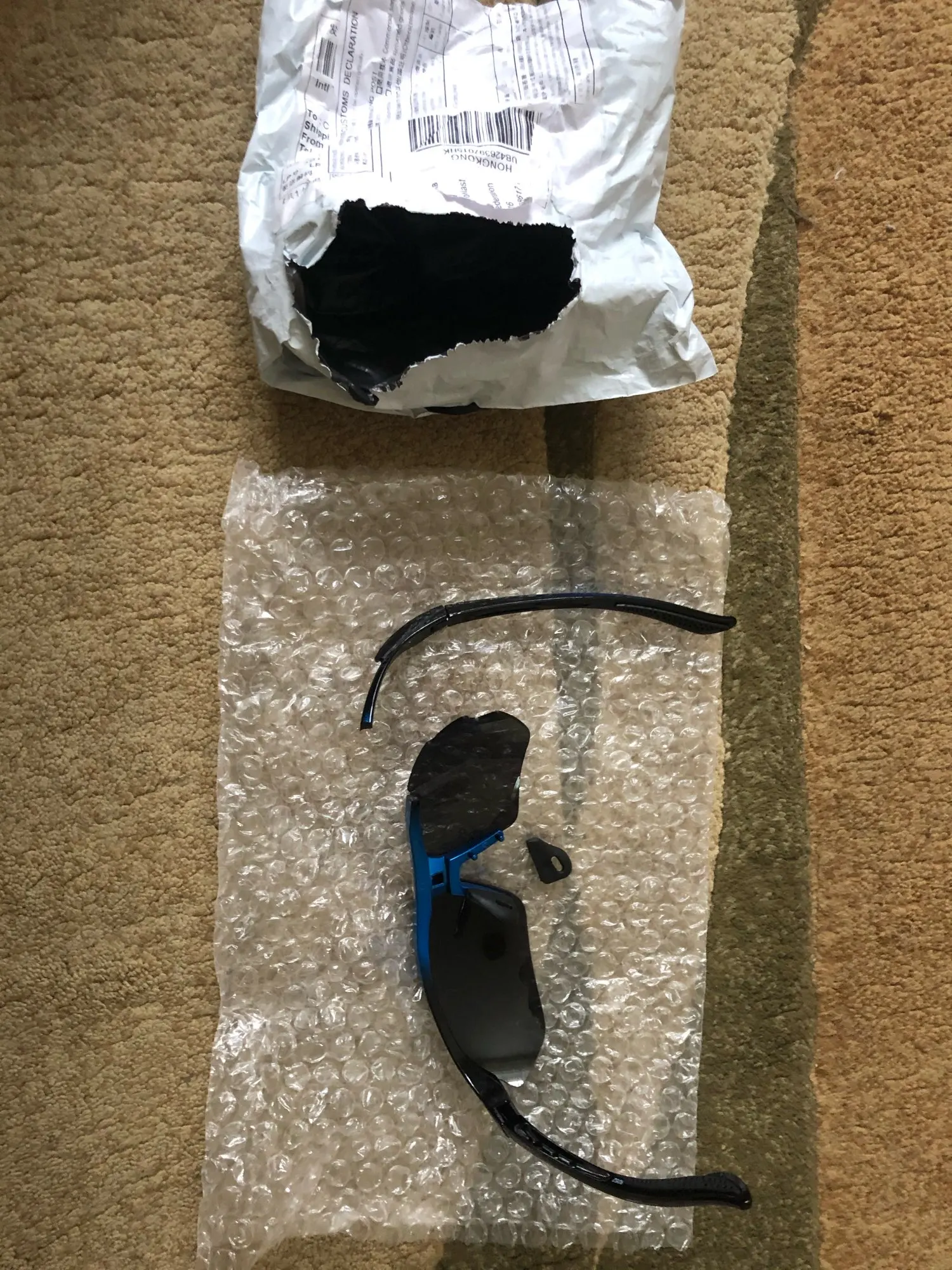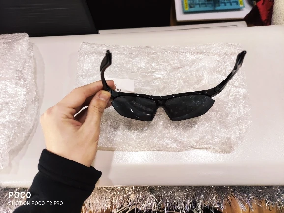 Очки упакованы очень хорошо. Соответствуют описанию, большого размера, при моем росте 182см даже великоваты. Пластик... Не регулируемые. Для прогулки на велике подойдёт. Тб на заводе не заметили, так что рекомендую.
