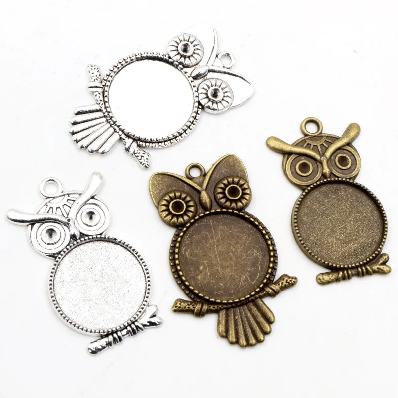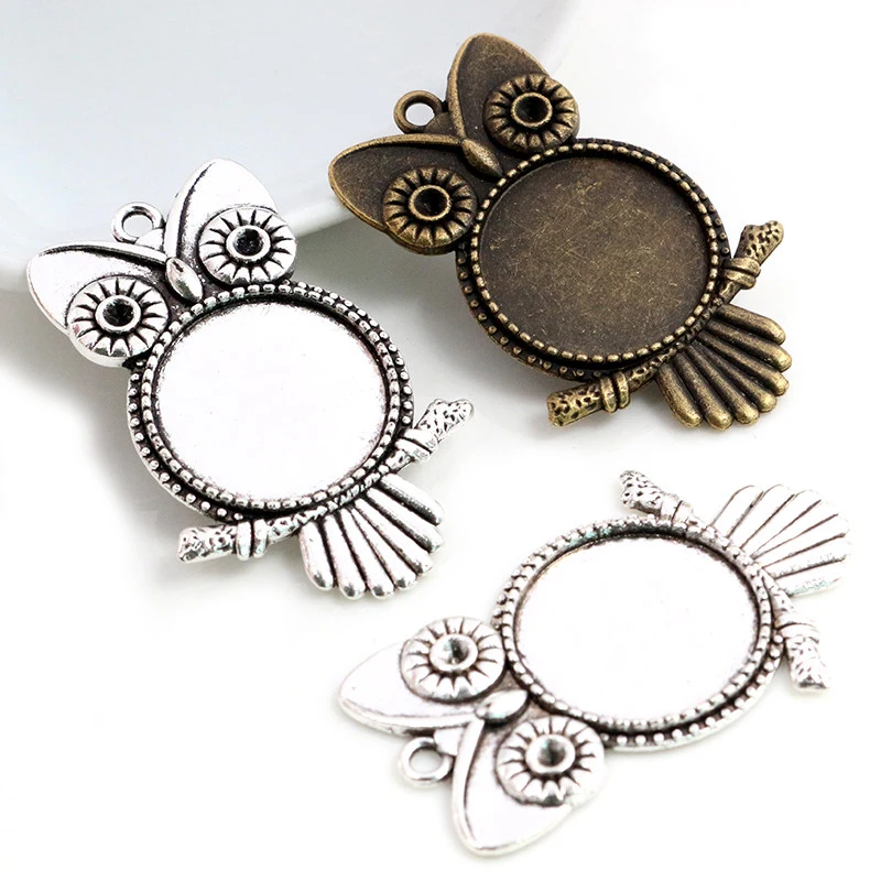10 шт 20 мм Внутренний размер Античная Посеребренная бронза классический стиль Сова Кабошон основа Установка Подвески кулон