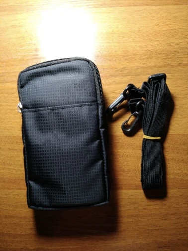 Продукт с хорошей стоимостью. Он хорошо сшит, и материал кажется прочным, мы увидим, что такое работает с использованием. Различные возможности использования поставляются с ремнем для переноски в качестве плечевого ремня, зажима для ремня и карабина для ношения висячих. Приклеенное фото по сравнению с матовым размером 10. Мобильный телефон идеально помещается в одном из отсеков и в другом кошельке и ключах.