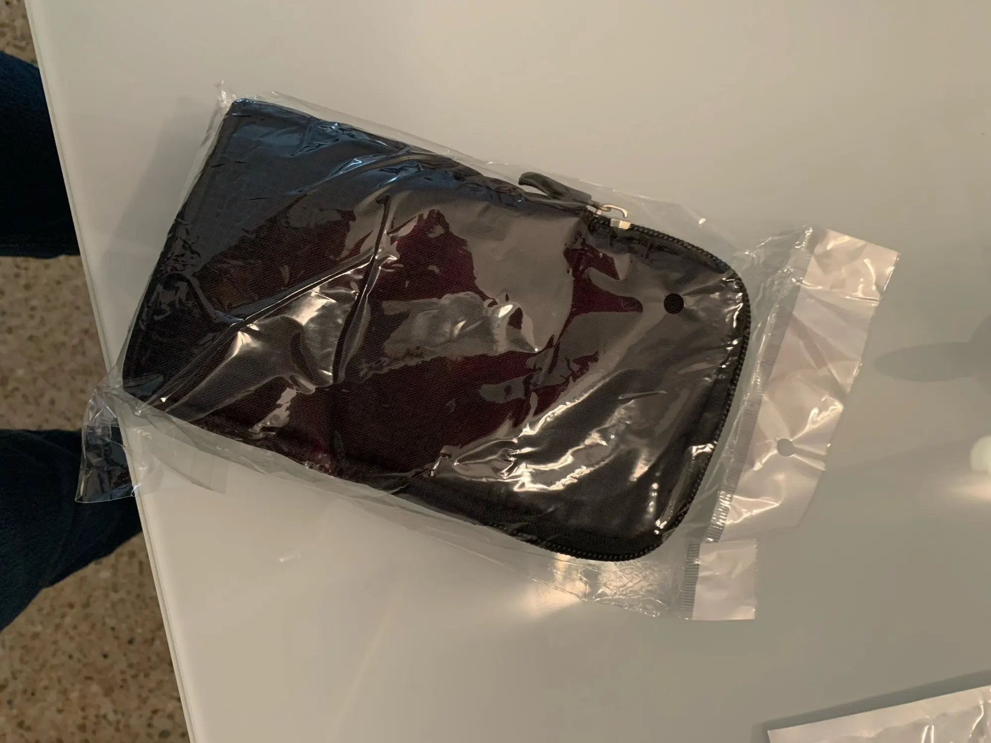 Доставка заказа заняла три недели. Брал сумку для ношения телефона на работе. Шести дюймовый телефон в бронированом чехле ложится в сумку идеально. Во втором отделении хорошо себя чувствует пачка сигарет и зажигалка (связка ключей тоже помещается).