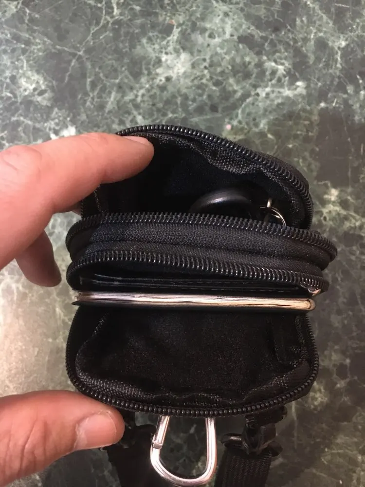 Отличная сумка для переноски мобильных и различных предметов, таких как бумажник, ключи, поставляется с подкладкой внутри, с карабином, чтобы повесить его, хорошие молнии и лучше, что на изображениях.