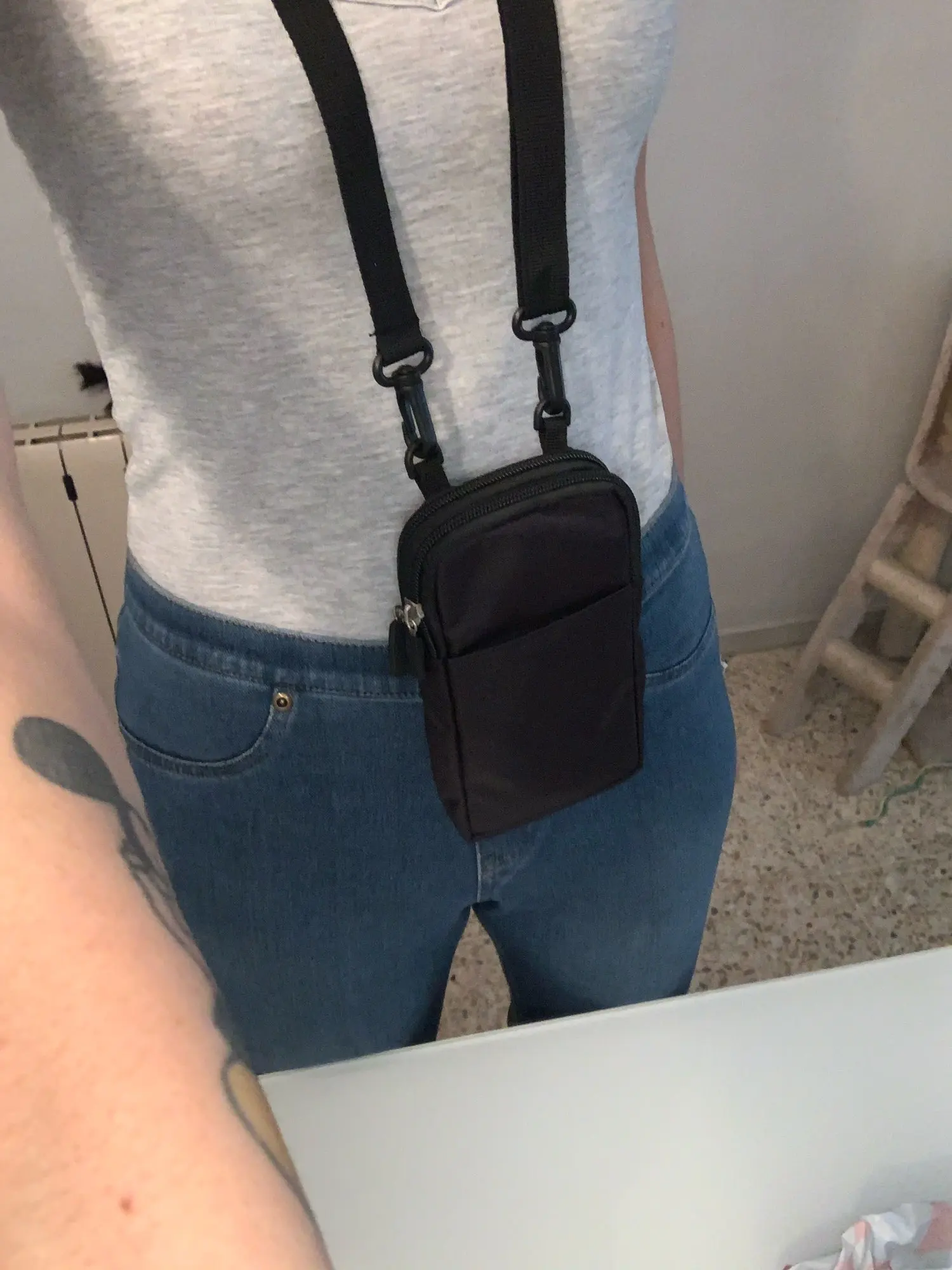 Я получил это, потому что карман, который я использую для своего телефона (справа), носит. Это хорошо, хотя мне немного тяжелее, чем карман. Кроме того, крючок находится не в верхней части, он немного слишком далеко вниз на задней части сумки. Все еще, можно использовать. Мне нравится Защитная подкладка.