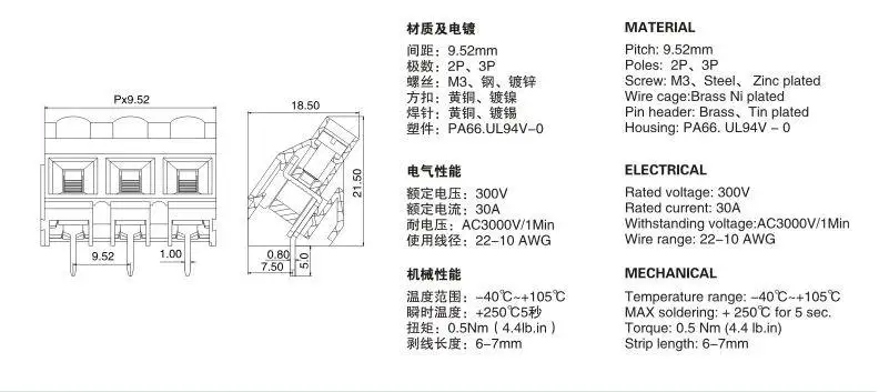 950S-9.52-3P снижение модель, Печатной платы клеммная колодка, 9.52 мм шаг, 3pin, 300 В 30A 100 шт.лот бесплатная доставка