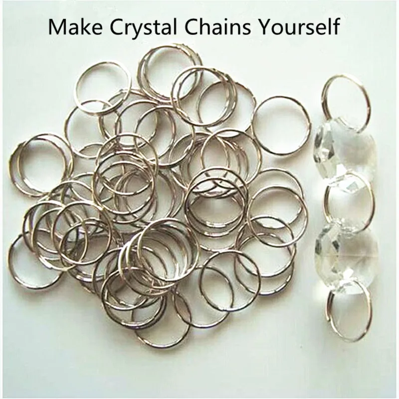 Кольцо Металлическое, 50 шт.лот, 14 мм, люстра с хрустальными бусинами для дверейокон, восьмиугольные камни в 2 отверстия, аксессуары для украшения дома