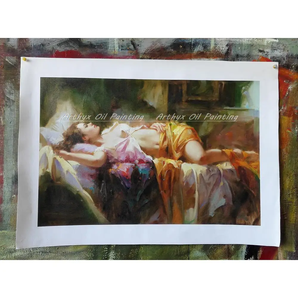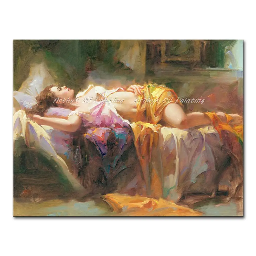 Описание изделия: Спящая Красивая Обнаженная девушка, Европейский Портрет, картина маслом, принт на хлопке для спальни, гостиной, настенный Декор для дома.
