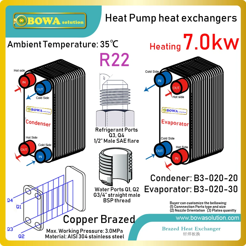 2HP PHE как испаритель и конденсатор в R22 Тепловая насосная установка работает как 7 кВт водонагреватели, чтобы получить тепло от земли или источника воды