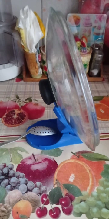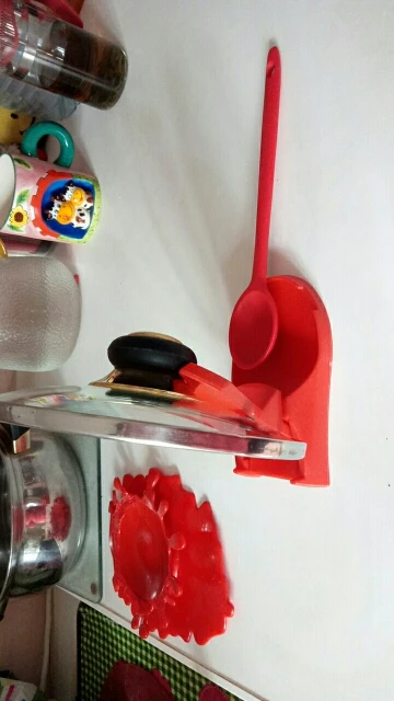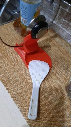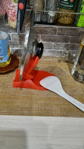 Доставка очень быстрая. На этом прелести заканчиваются. На фото весёленькая жёлтая подставка пришла красная но это было бы не беда однако самого тошнотного оттенка. Далее примостить полковник так как показано на фото можно только при условии что на подставке стоит тяжёлая крышка. Иначе подставка просто раскладывается. Не знаю кто как а я обычно Снимаю крышку что бы воспользоваться половником и наоборот.... Как то что бы они были одновременно не приделах бывает очень редко :-/ в остальном вещь в общем компактная много места не занимает и легко складывается что бы убрать.