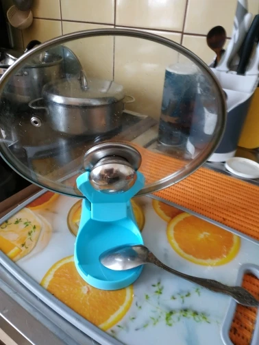Держит крышку от кастрюли отлично. Удобная подставка.