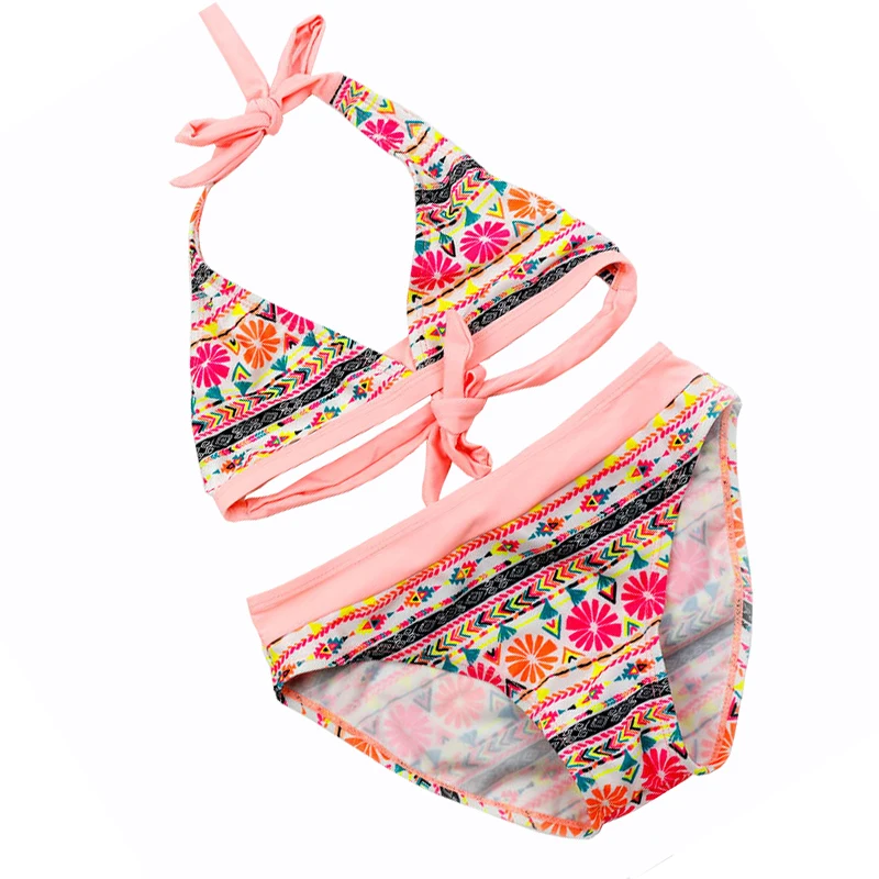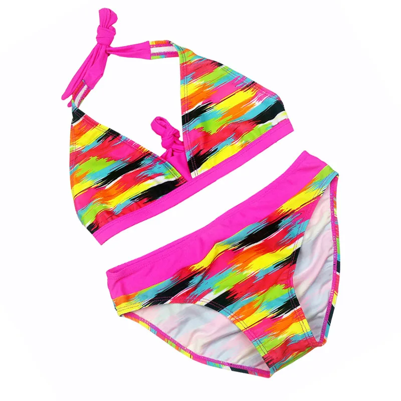 Раздельный купальник для девочек, эластичный раздельный купальник в полоску, детское бикини в полоску, для лета, 2021