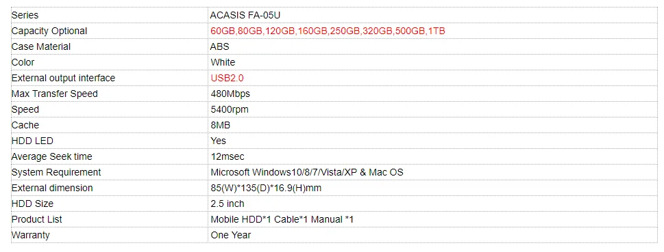 Портативный внешний жесткий диск ACASIS HDD 60 ГБ 80 ГБ 120 ГБ 160 Гб 250 ГБ 320 ГБ 500 ГБ 1 ТБ для PS4 Xbox ПК Mac ноутбуков настольных компьютеров