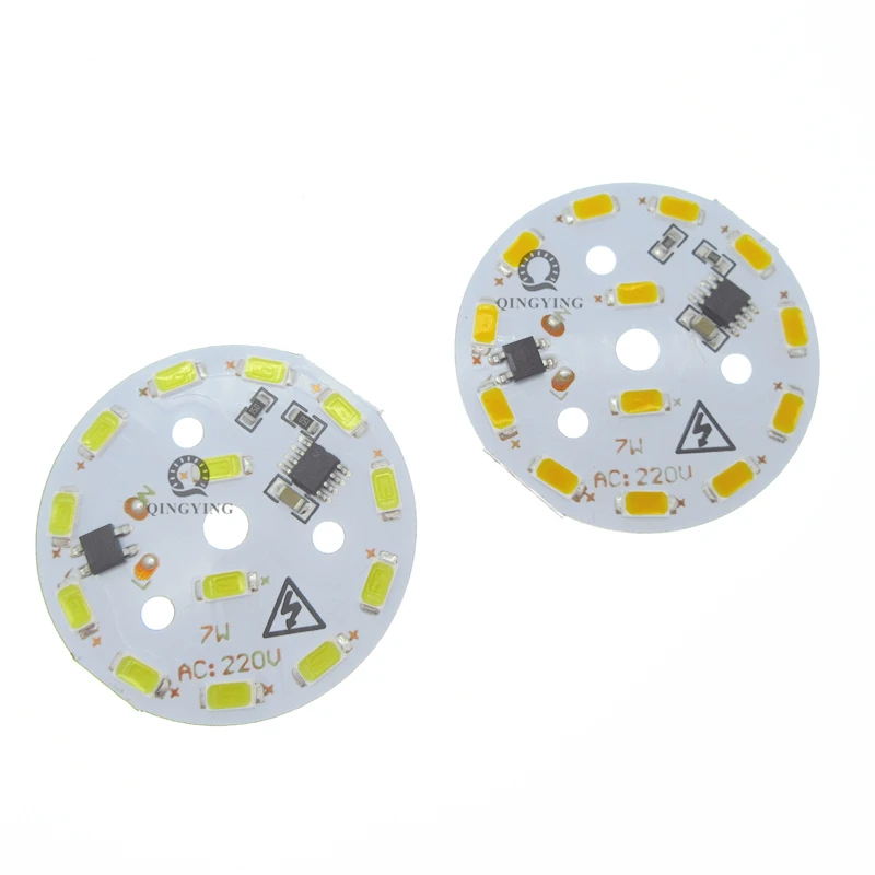 Светодиодная светильник 7 Вт, 220 В переменного тока, светодиодная печатная плата 5730SMD с регулируемой яркостью, алюминиевая пластина с белымтеплым белым светом диаметром 44 мм, 20 шт.