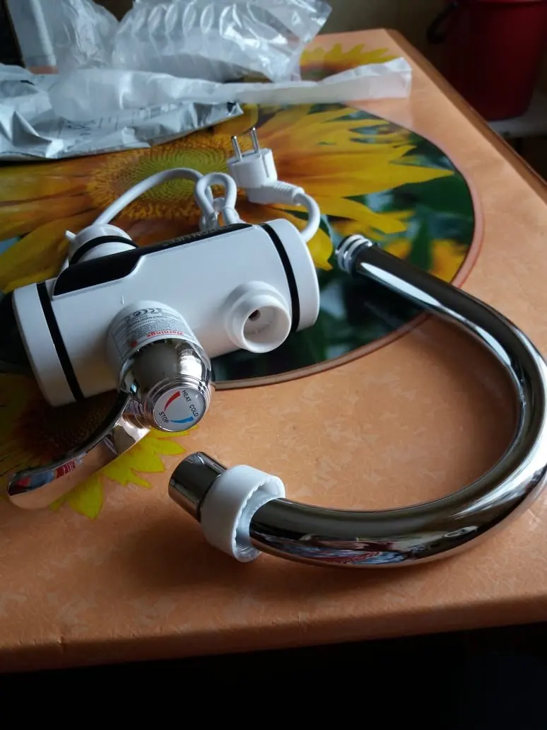 Посылка пришла во время без повреждений. Кран установил, всё работает. Минус только в том что нужно отдельно розетку выводить с кабелем большего диаметра, обычный провод сильно греется. Желательно ещё автомат отдельный на него вывести.