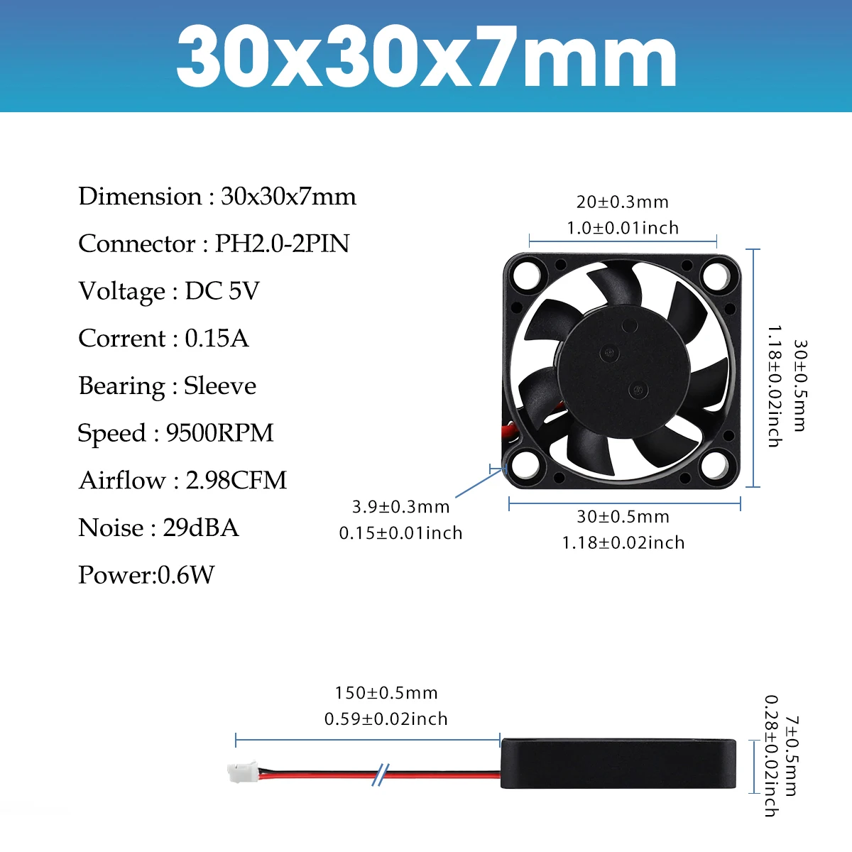 Небольшой Бесщеточный Охлаждающий вентилятор постоянного тока Gdstime, 5 шт., 5 В, 2 контакта, 30x30x7 мм, 30 мм, 2 контакта, 2,0 3007
