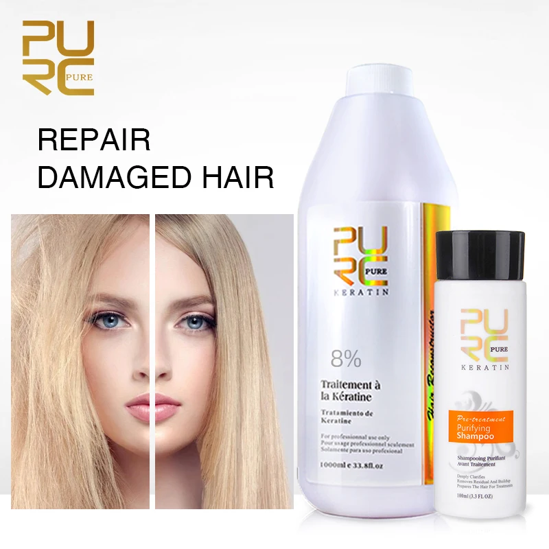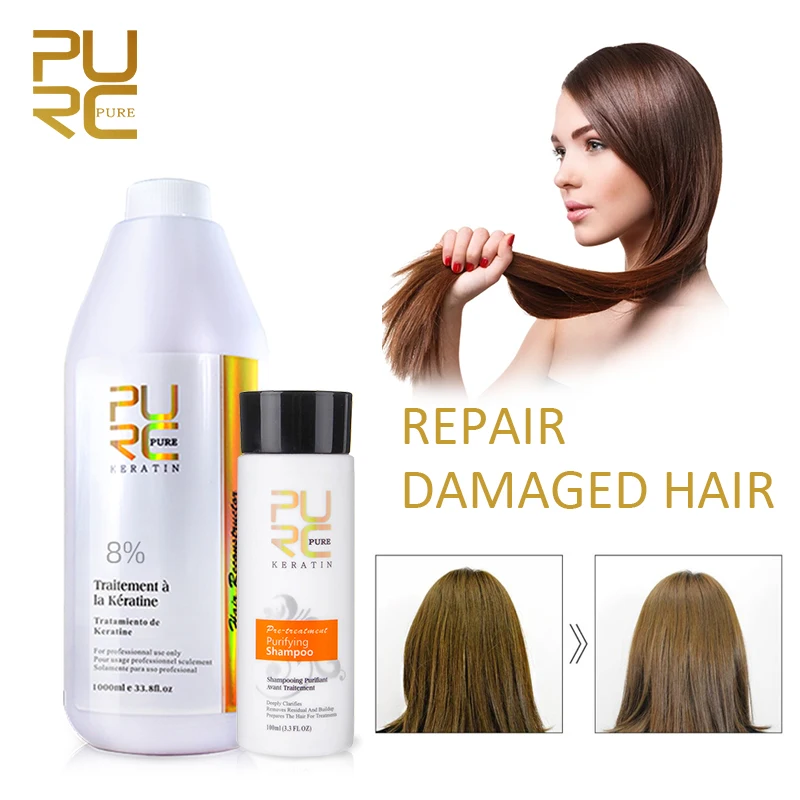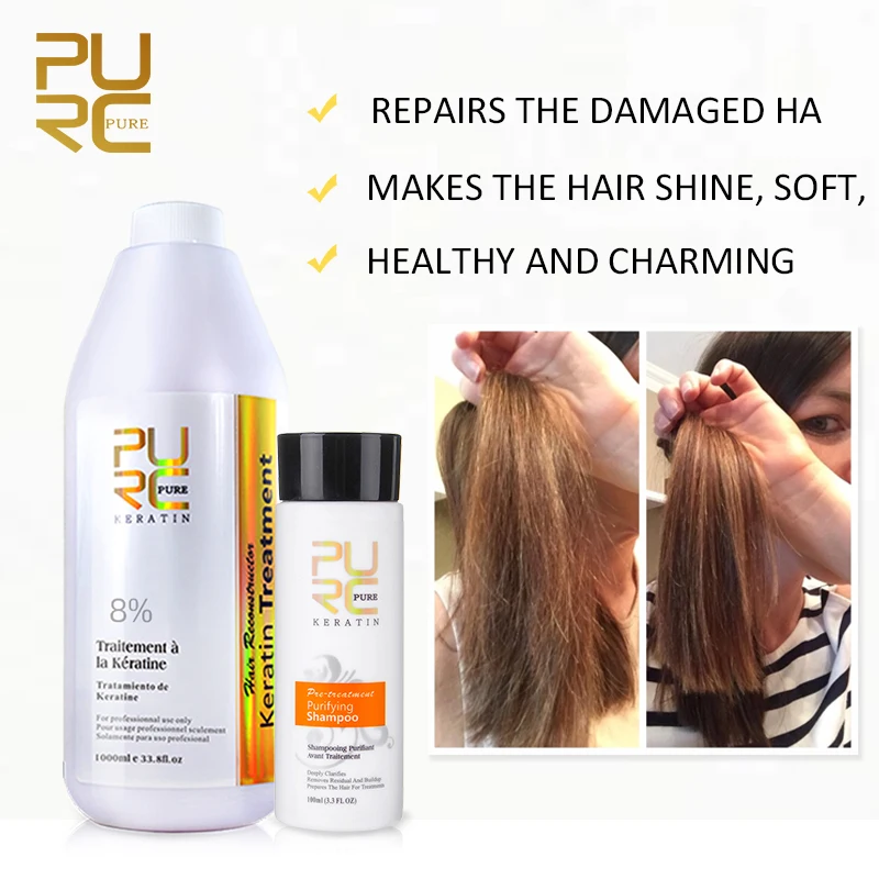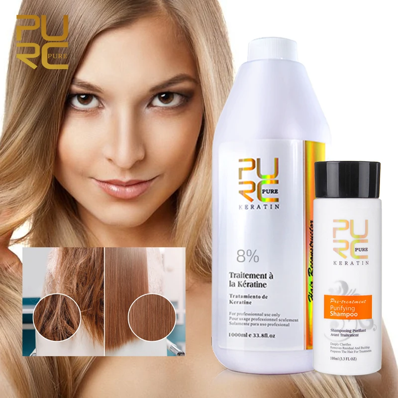 PURC 8% Formlain 1000 мл кератин и 100 мл очищающий шампунь для выпрямления высокое качество лучший уход за волосами Набор Бесплатная доставкаКератин Особенности: