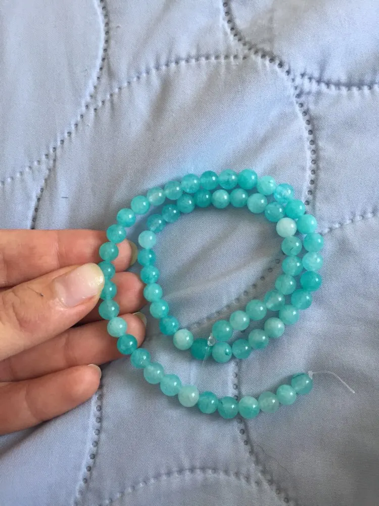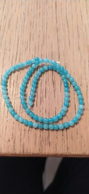 Все соответствует, цвет прозрачно бирюзовый. Бусинки ровные, брала самые маленькие, 4 мм. По камню думаю не амазонит, скорее тонированный агат. Быстрая доставка. В целом я довольна!