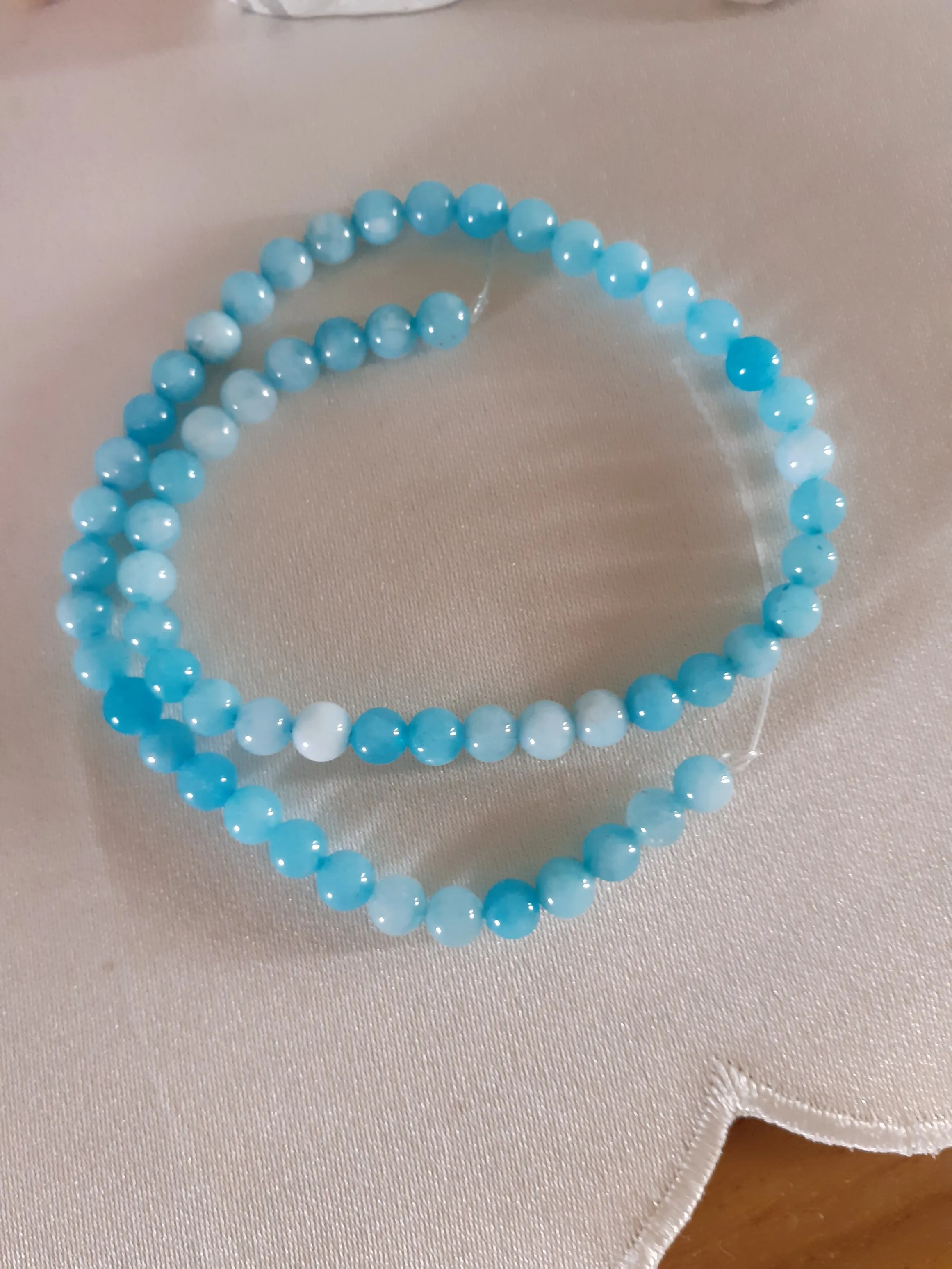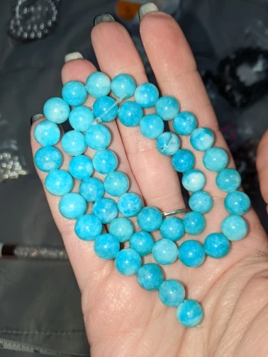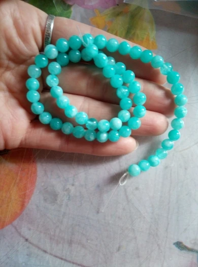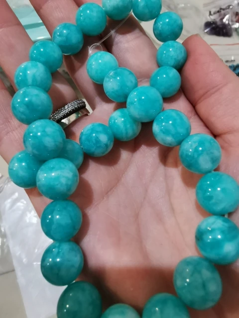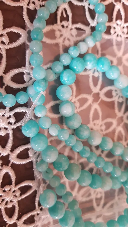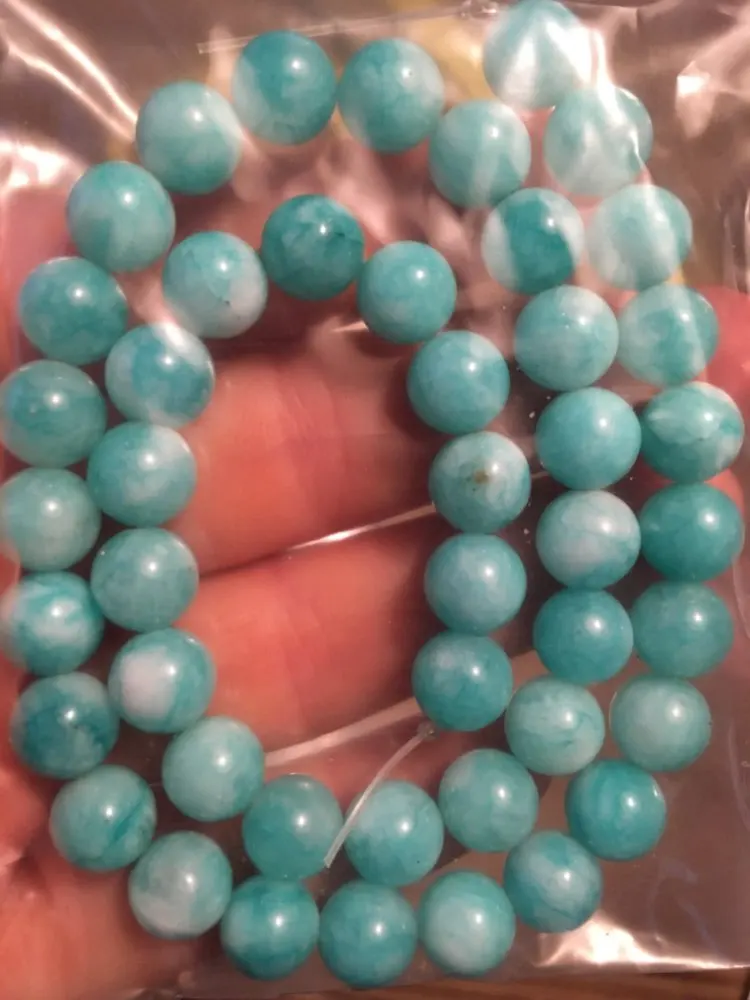 Очень красивые бусины из амазонита, изготовленные из натуральных камней. Соответствует описанию, и я рекомендую продавцу
