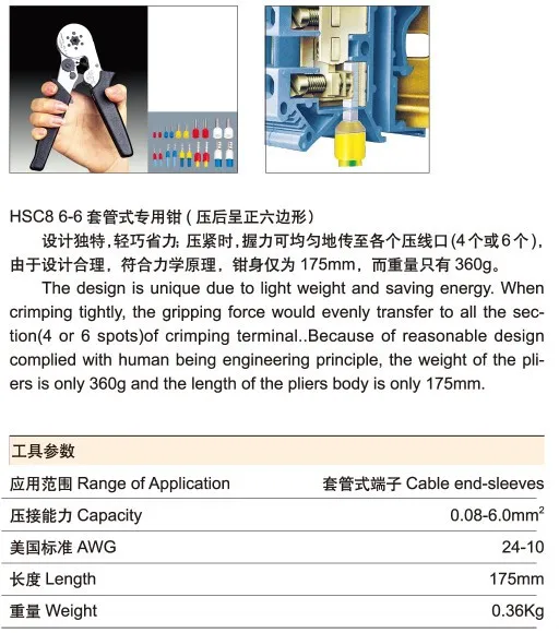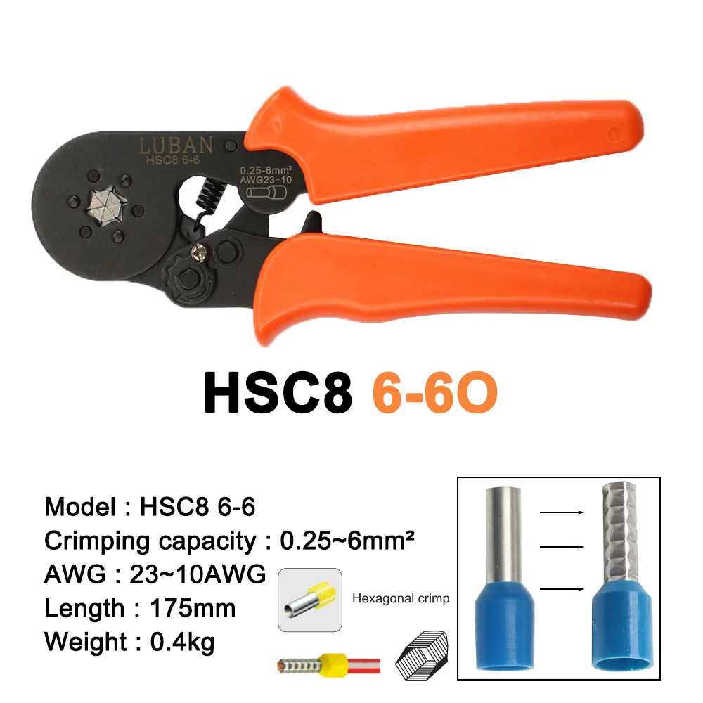 Многофункциональные инструменты HSC8 10SA 6-6 0,25-6 мм 23-10AWG шестигранные 0,25-6 мм 23-7 Четырехсторонние трубчатые Клещи для обжима клемм