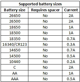 Токи разряда: 200Ма, 300Ма, 500Ма, 700Ма, 1000Ма
