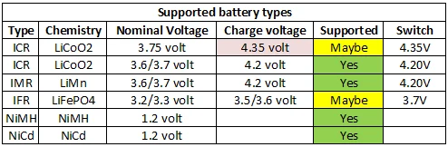 Зарядное устройство имеет внутренний выключатель с маркировкой 3,7 V, 4,20 V и 4,35 V. Я не тестировал этот переключатель, потому что он внутренний, но возможно заряжать другие литий-ионные химические элементы.