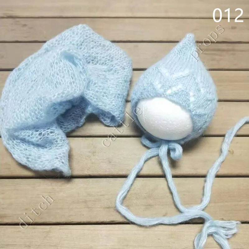 Комплектация распродажа. Накидка из мохера ручной вязки с чепчиком. Реквизит для фотосъемки новорожденных Baby Shower Подарочная бутафория