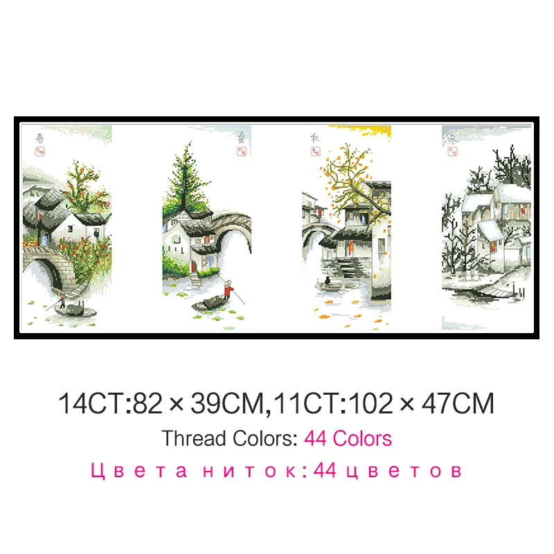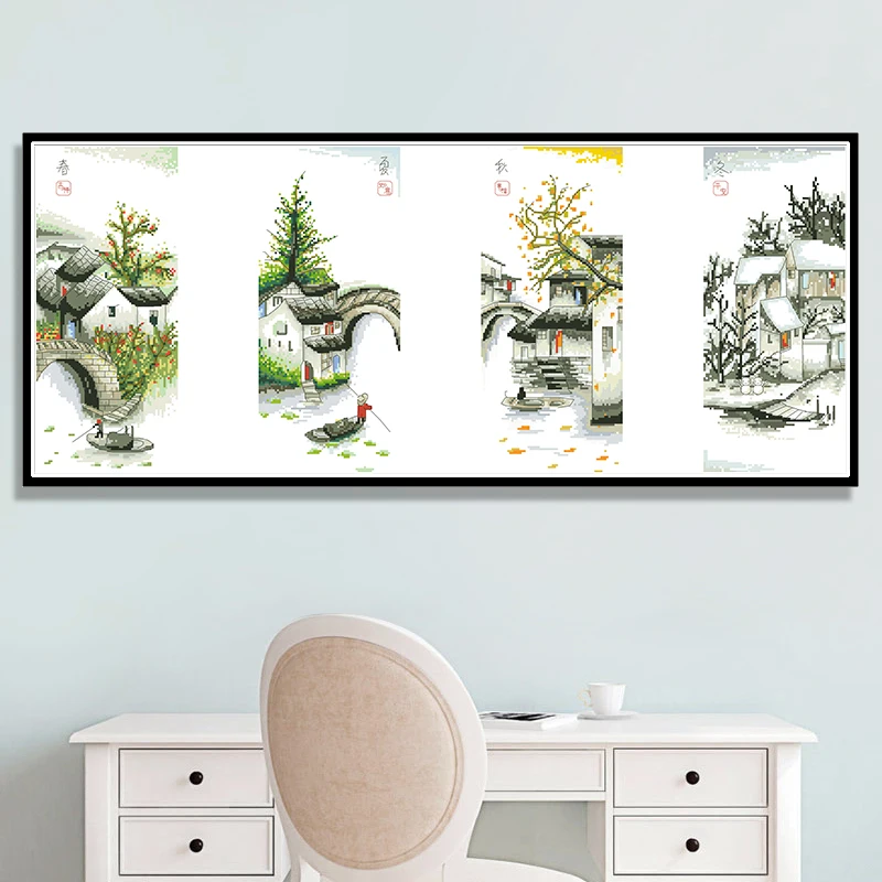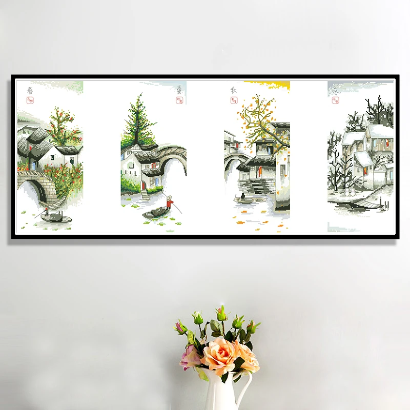 Четыре сезона в водной деревушке картины на холсте Счетный крест наборы для вышивки 11CT 14CT домашний декор наборы для рукоделия