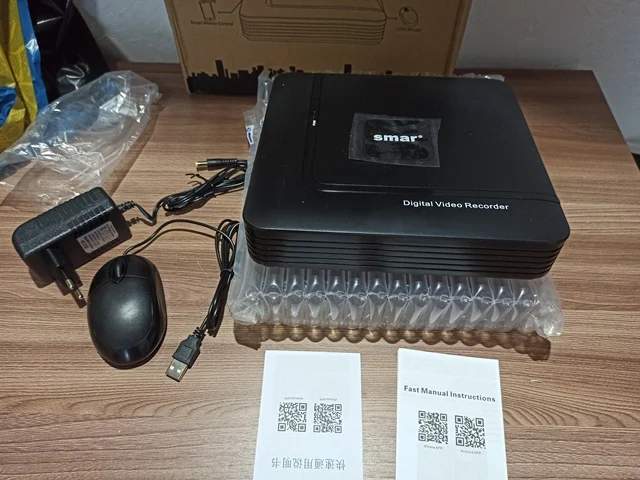 Отличный регистратор. Пришёл до Пермского края за 15 дней. Упакован хорошо, без повреждений. При включении сразу нашёл подключённые видеокамеры. В комплекте мышка и блок питания на 2 А.