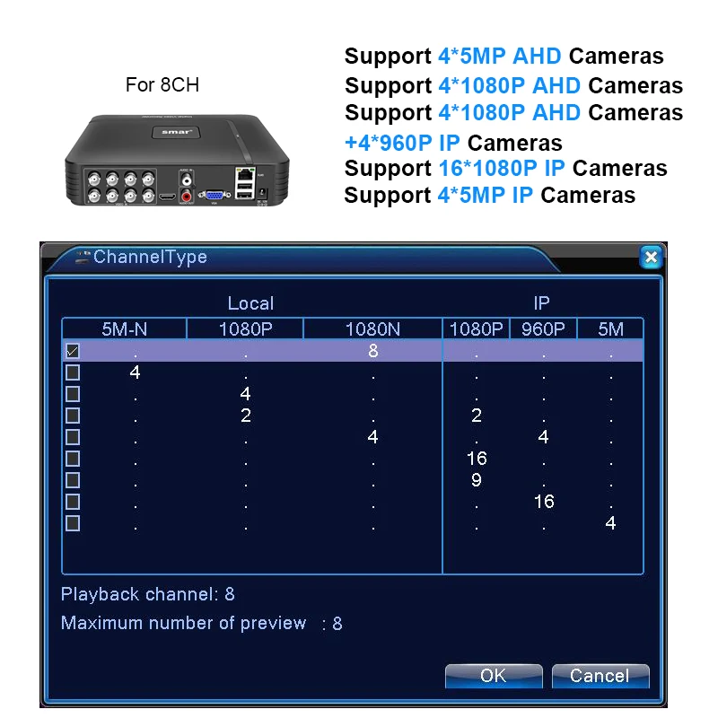 Мини-видеорегистратор Smar 5 в 1, IP-камера для системы видеонаблюдения, TVI, CVI, AHD, CVBS, 4-канальная, 8-канальная, 5-канальная, AHD, DVR, 5 МП, NVR, Onvif