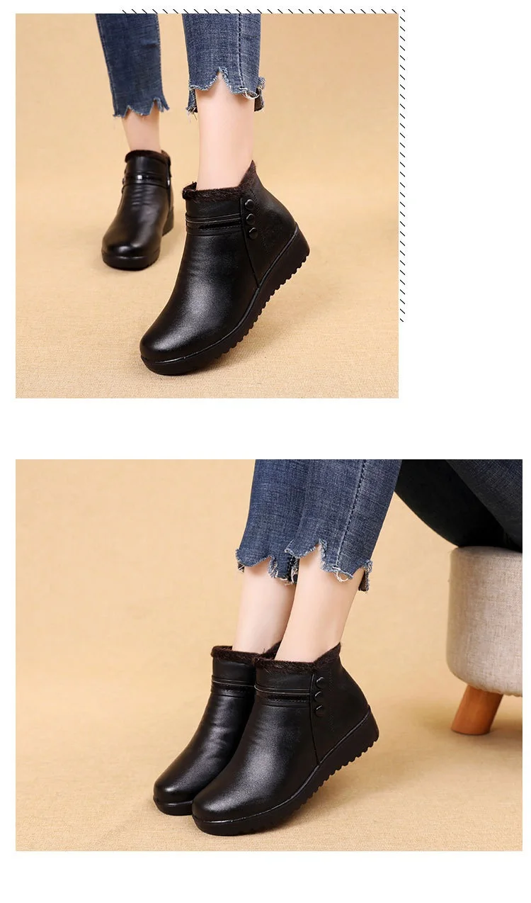 Ботильоны женские зимние из натуральной кожи, модные повседневные теплые ботинки на толстом плюше, водонепроницаемые Нескользящие