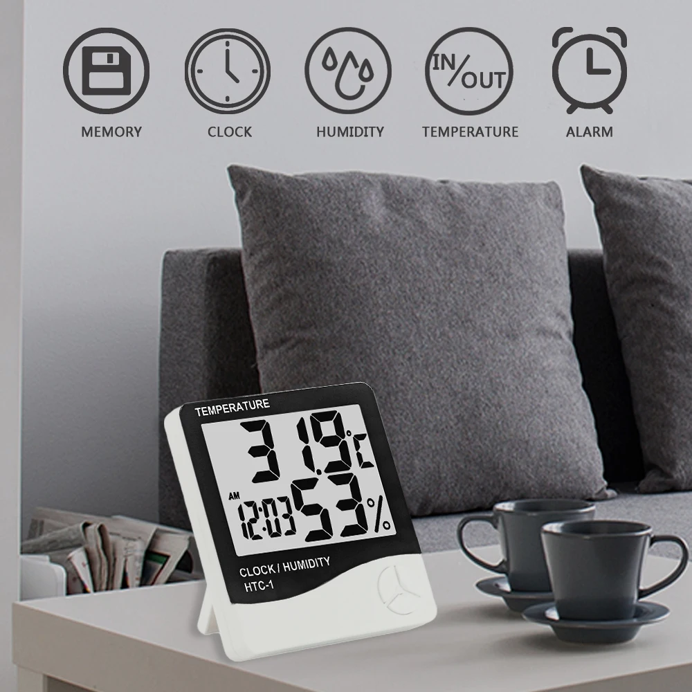 HTC-1 цифровой Комнатный термометр гигрометр Метеостанция Будильник настенные электронные температурный измеритель влажности
