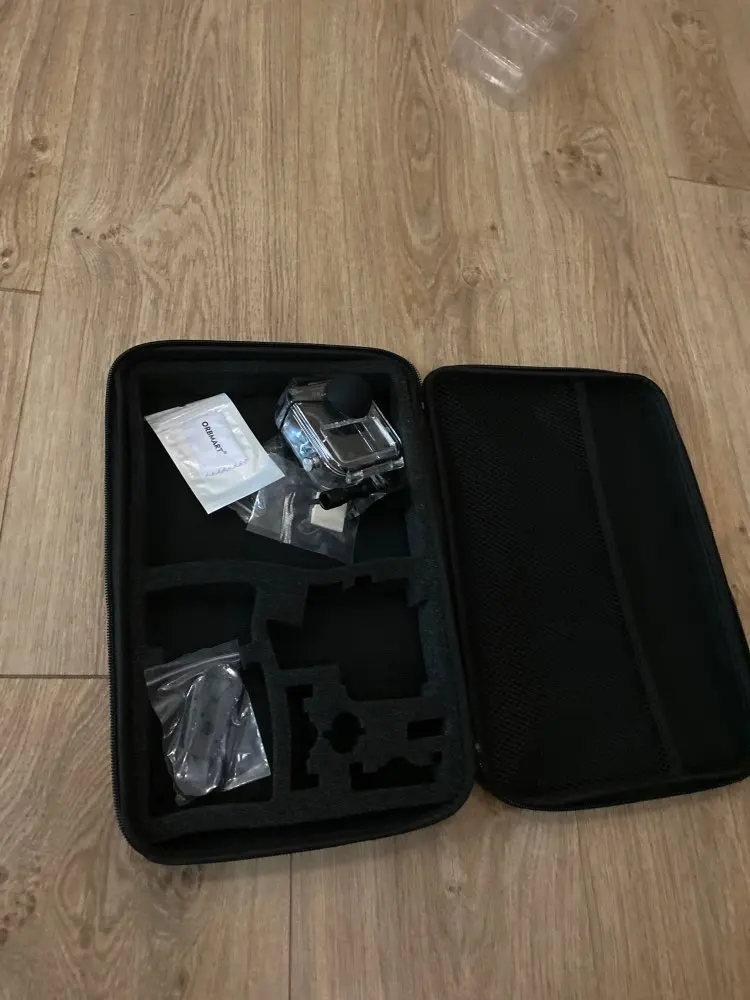 Отличный миниатюрный футляр, как раз под размеры экшн камеры! Качество безупречно, доставлен всего за 9 дней. Внутри - в пакетике салфетка для протирки объектива. В верхней крышке изнутри предусмотрено отделение для мелочей.