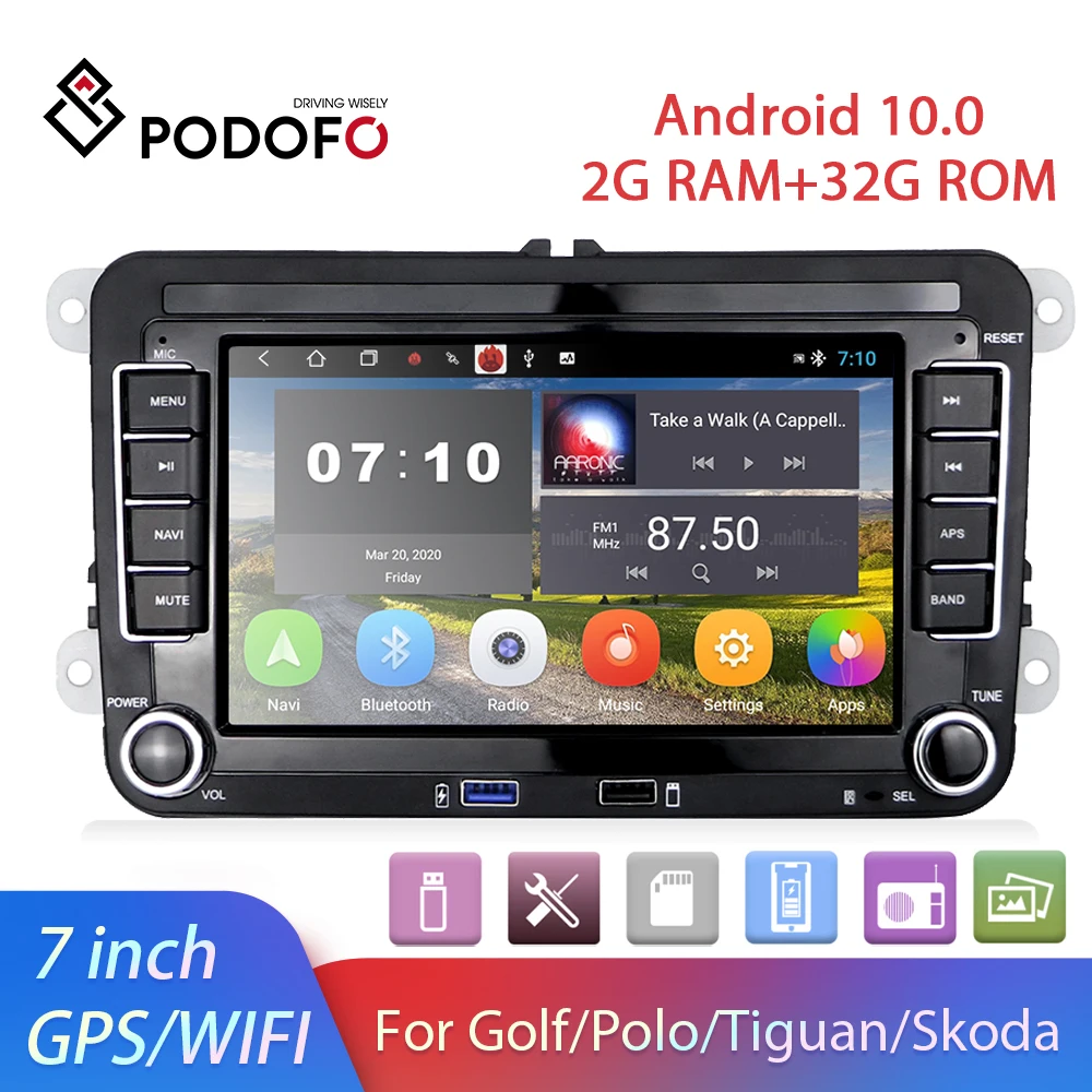 Podofo 2Din 7 ''Android 10.0 GPS автомобильное радио для VW Golf 5 ...