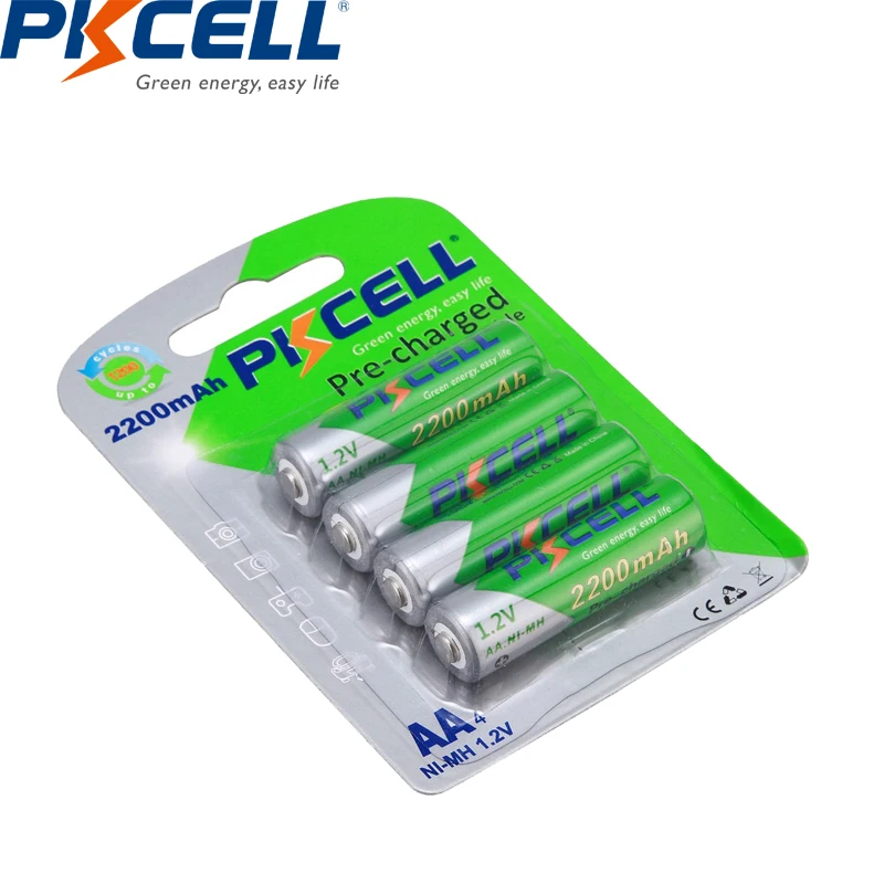 Аккумуляторные батарейки AA PKCELL 2200 мАч NIMH, 1,2 в, 4 шт. Ni-MH AA Rechargeble батарея