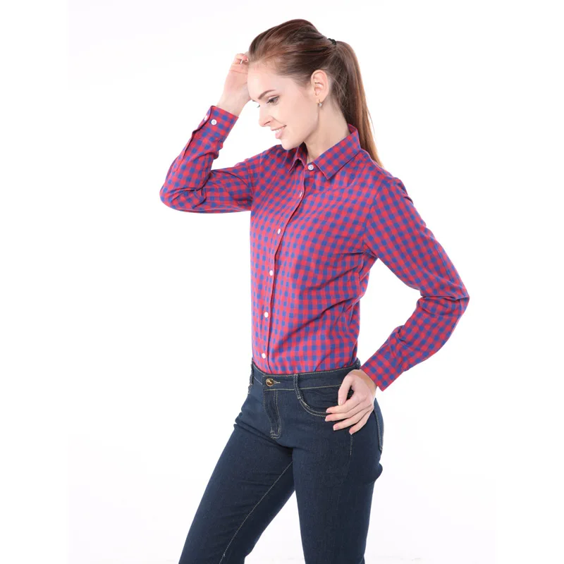 Рубашка женская в клетку Dioufond, повседневная хлопковая блузка с длинным рукавом и отложным воротником