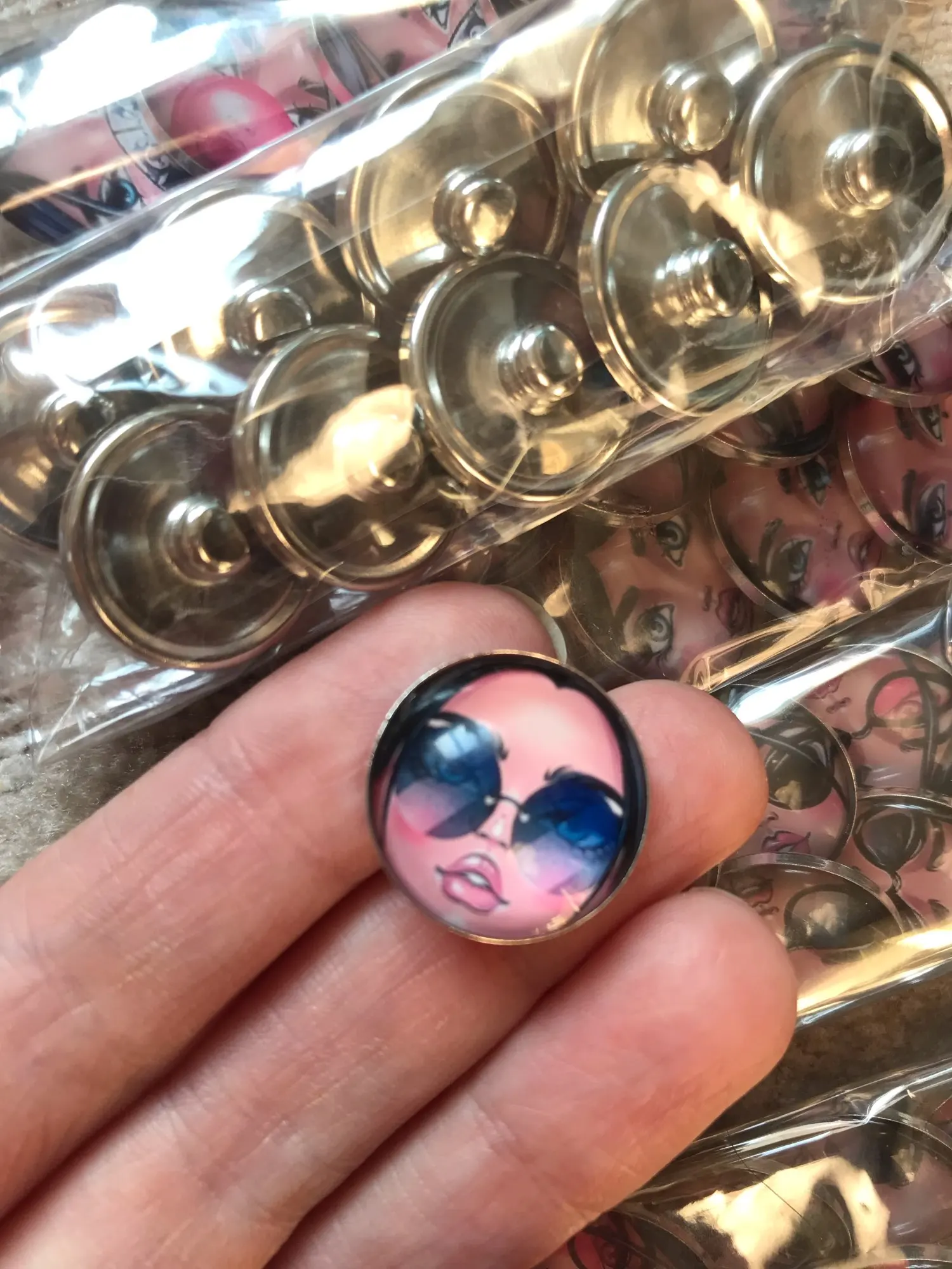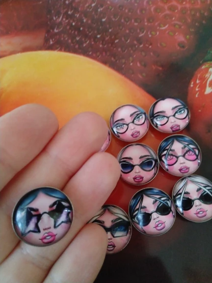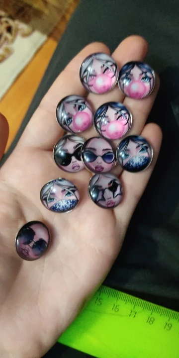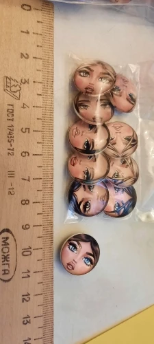 Полный восторг от этих личиков!) Кто-то в отзывах писал, что зачем париться, если можно купить лица без кнопок, но в тот момент, когда я искала, таких не было. Не проблема! Кнопки отошли легко, бумага с обратной стороны кабашона не пострадала :) Теперь закажу личики девочек в очках. Рекомендую)
