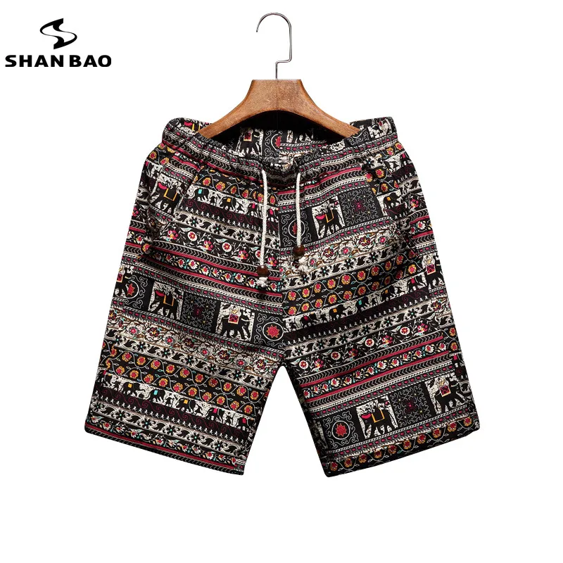Шорты SHAN BAO мужские прямые легкие пляжные, свободные модные тонкие повседневные штаны в классическом стиле с принтом, лето 2021
