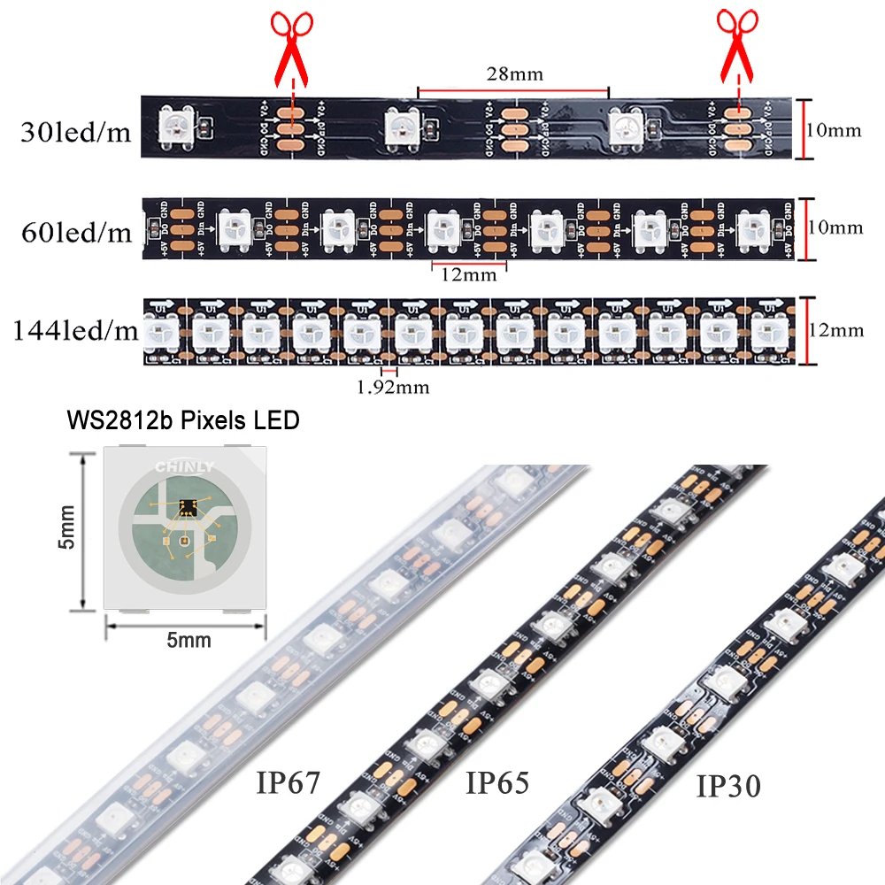 WS2812B Светодиодная лента индивидуально Адресуемая красный зелёный синий умная Пиксельная лента 1 м4 м5 м Чернаябелая печатная плата WS2812 IC Водонепроницаемая 5 в 3060144 светодиодов