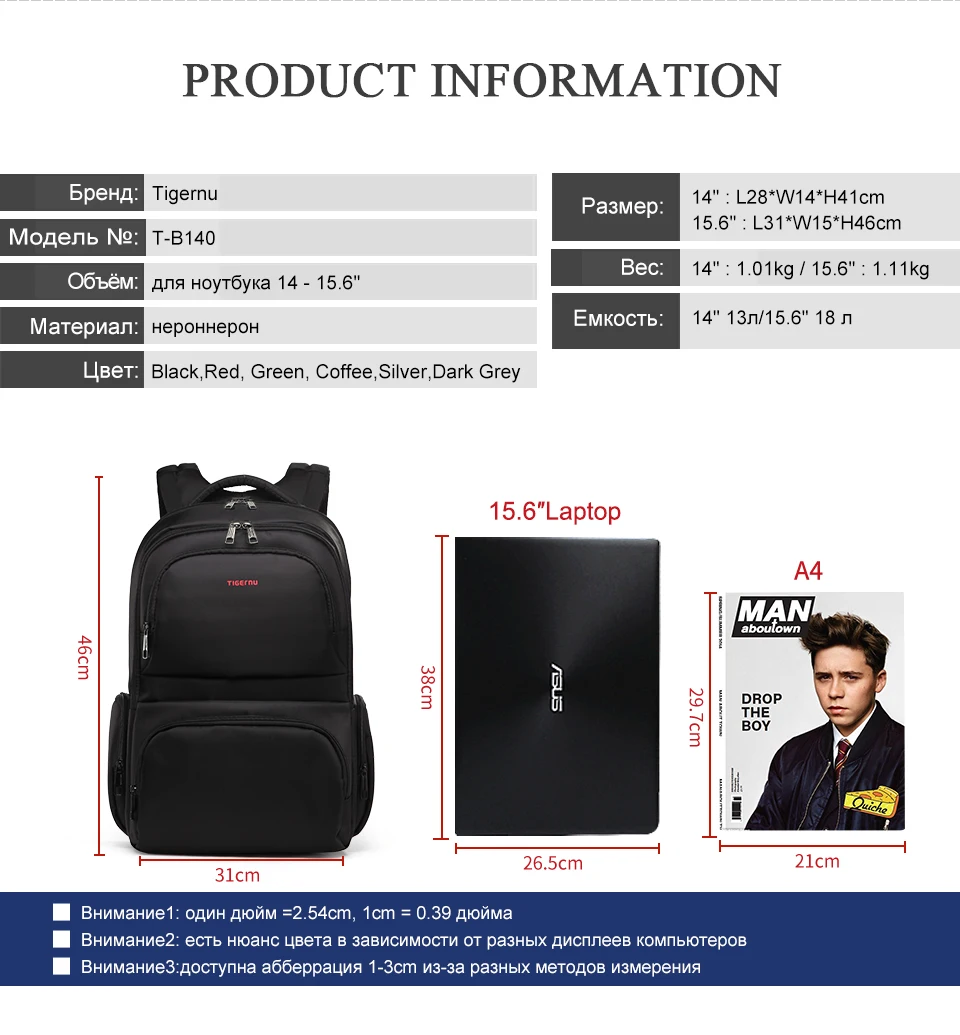 Не ожидал, что будет так отвратительно и непрактично, подкившись на положительные отзывы. 1) Отделение для ноутбука неудобное, т.к. находится за плечевыми лямками, само отделение узкое и в него старый мой ноутбук HP ProBook 6570 15.6“ еле вставляется, одной рукой не вынимается и поднимает за собой весь рюкзак. Для планшета или ультрабука может подойти. 2) На спине с этим ноутбуком рюкзак сидит с ноутбуком очень некомфортно. 3) Остальные карманы, кроме боковых, хорошо сделаны. 4) Боковые карманы (для зонтика или бутылки) слишком низкие. 5) Очень не хватает снаружи на днище прорезиненного или сделанного из кож.заменинеля материала, чтобы можно было поставить на землю и ткань ничего не впитала за секунды. 6) ручка сверху для переноски должна была бы быть не тканевая, а с полимерной, чтоб не пачкалась.